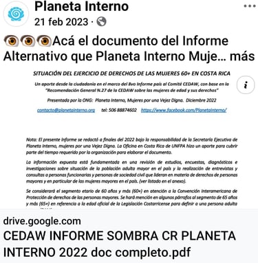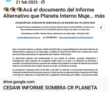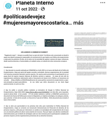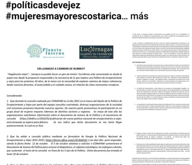 Además de conformar el espacio: Aliadas en la Vejez, desde donde le damos seguimiento a la Política Nacional de Envejecimiento y Vejez al 2033 (Costa Rica)